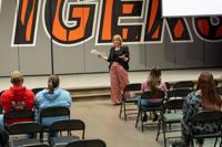 Tina Rowden of the Waynesville R-VI Community Resource Office spoke during the Rotary Club of Pulaski County meeting on Tuesday, Feb. 10. Rowden, who serves as the coordinator of grant management and the AmeriCorps director, spoke about the p…