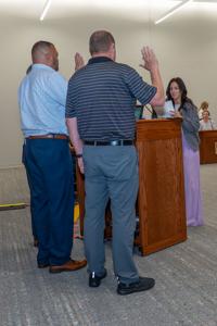 Layne Lercher, Richard Oxendine and Mike Rawlings were sworn in as members of the Waynesville R-VI Board of Education on April 20, 2026, after the election results were certified. The oath of office was administered by Board Executive Secretary Megan Ace.