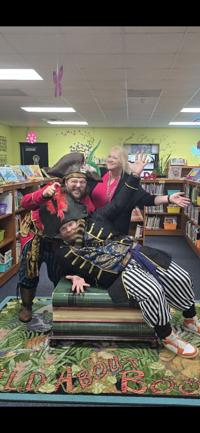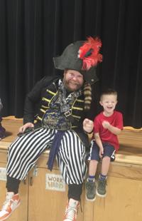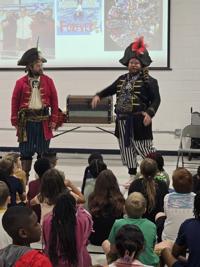 Dressed as pirates, the creative duo entertained and motivated students with a lively presentation about their journey, beginning with Izzy’s dream to become an author, which started in first grade.