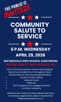 Dorsey Newcomb, executive director of Sustainable Ozarks Partnership, reminds everyone that the annual Community Salute to Service will be conducted next week.