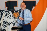 The Waynesville Sixth Grade Center received the traveling Tiger Spirit Trophy for their 1st place finish in the 2025 Homecoming Parade from Superintendent Hilary Bales during the Waynesville R-VI Board of Education meeting on Oct. 13.