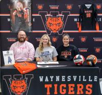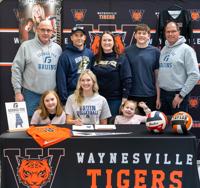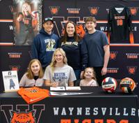 Taylor Miller, a senior at Waynesville High School, has signed to continue her academic and athletic (volleyball) career at George Fox University in Oregon. Her signing was held on Feb. 13.